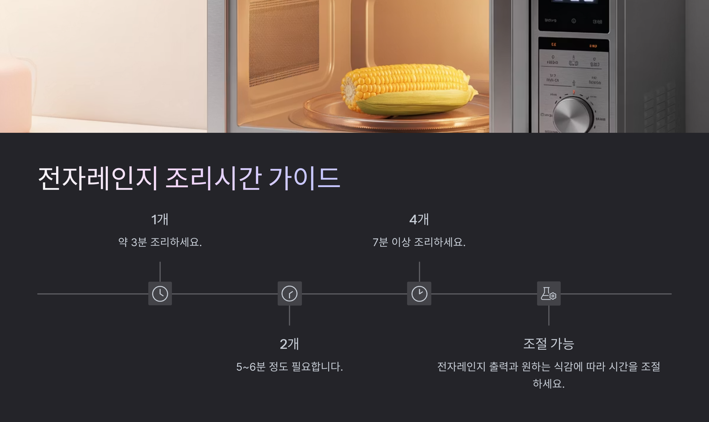 - 옥수수 1개: 4~5분