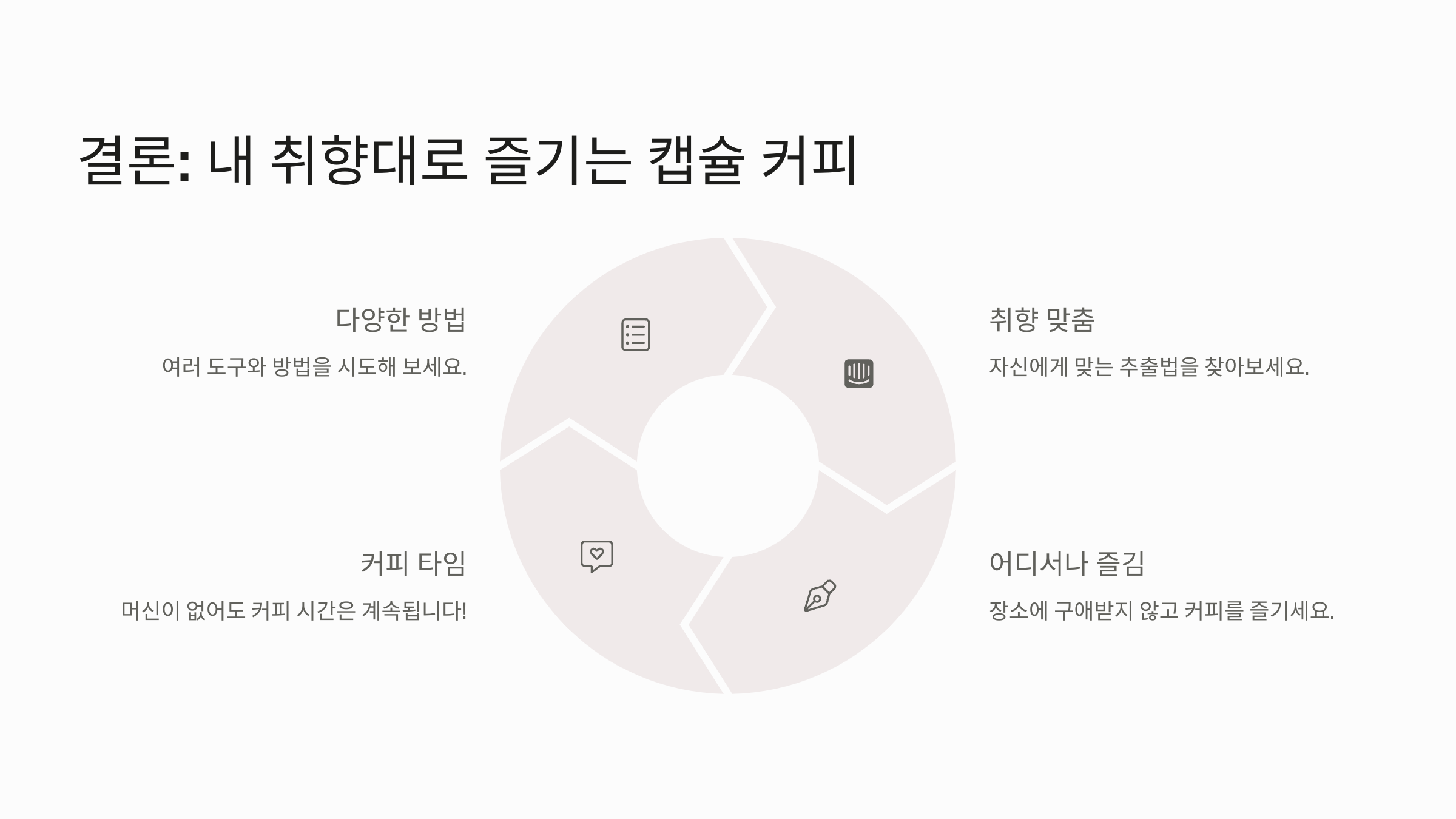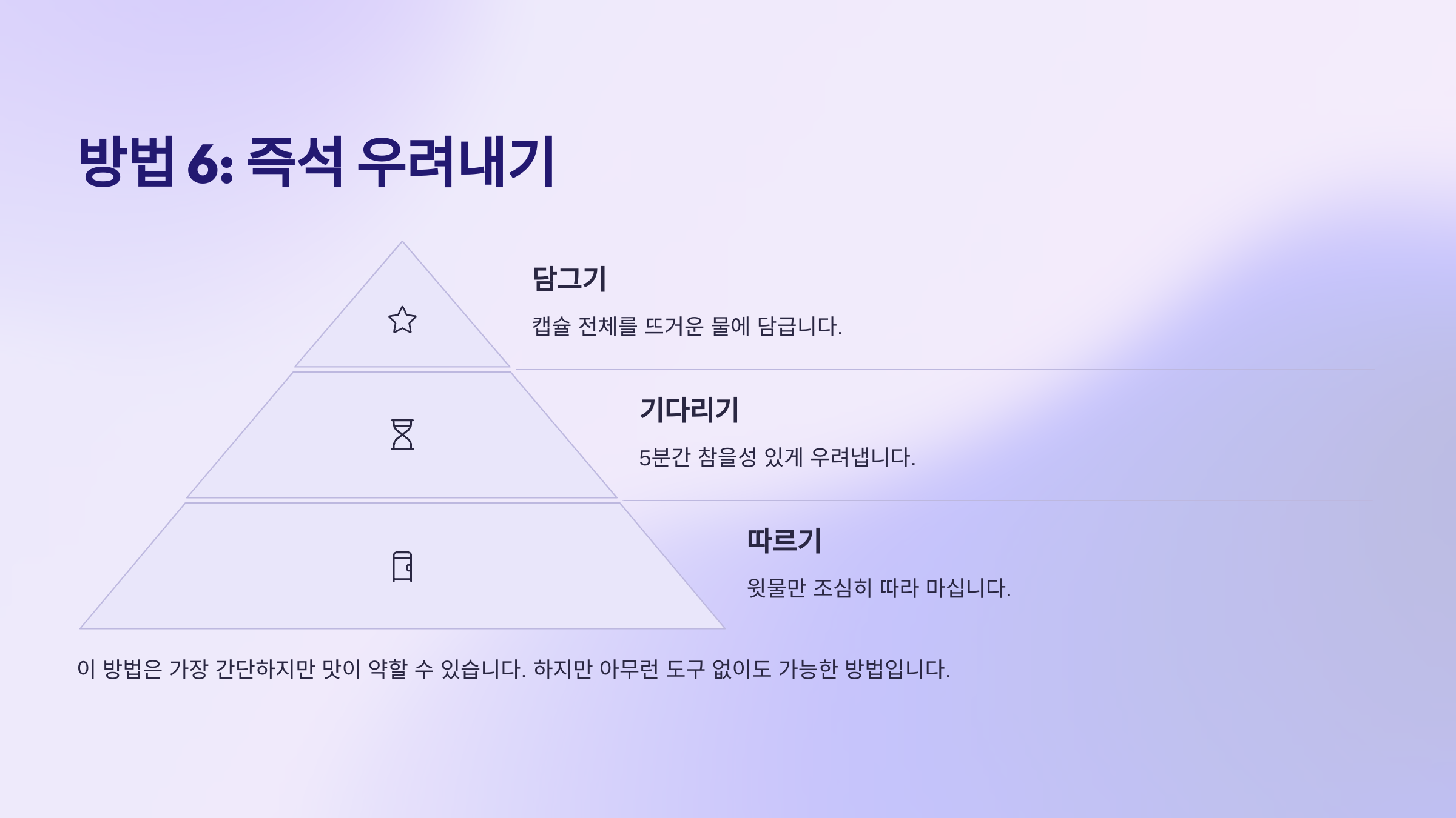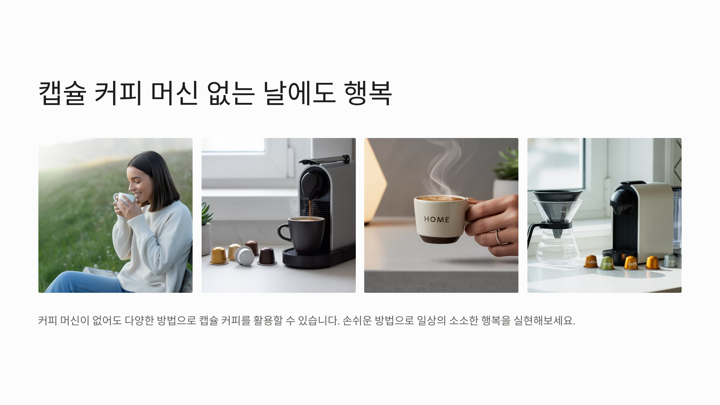 이 방법은 특별한 장비 없이도 집에서 쉽게 즐길 수 있어요. 급하게 커피가 마시고 싶을 때나, 캠핑이나 여행지에서도 유용하게 쓸 수 있어요. 단, 캡슐의 품질과 보관 상태에 따라 맛이 달라질 수 있으니 잘 밀봉된 신선한 캡슐을 사용하는 게 좋아요. ☕🏕