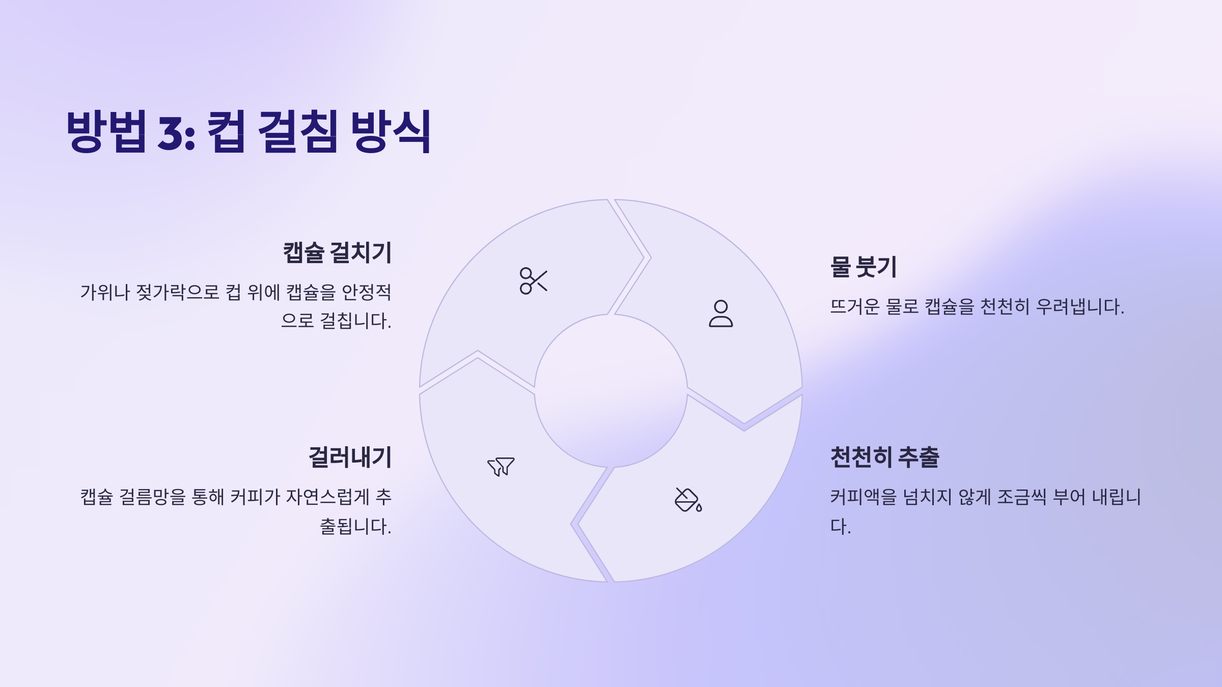 드립퍼는 집에서 핸드드립 커피를 즐기고자 하는 분들에게 아주 익숙한 도구예요. 캡슐 커피도 드립퍼를 활용하면 기분 좋은 산미와 깔끔한 맛을 살릴 수 있어요. 특히 커피 머신 없이도 깔끔하게 즐기고 싶은 분들에게 강력 추천하는 방식이에요. ☕
