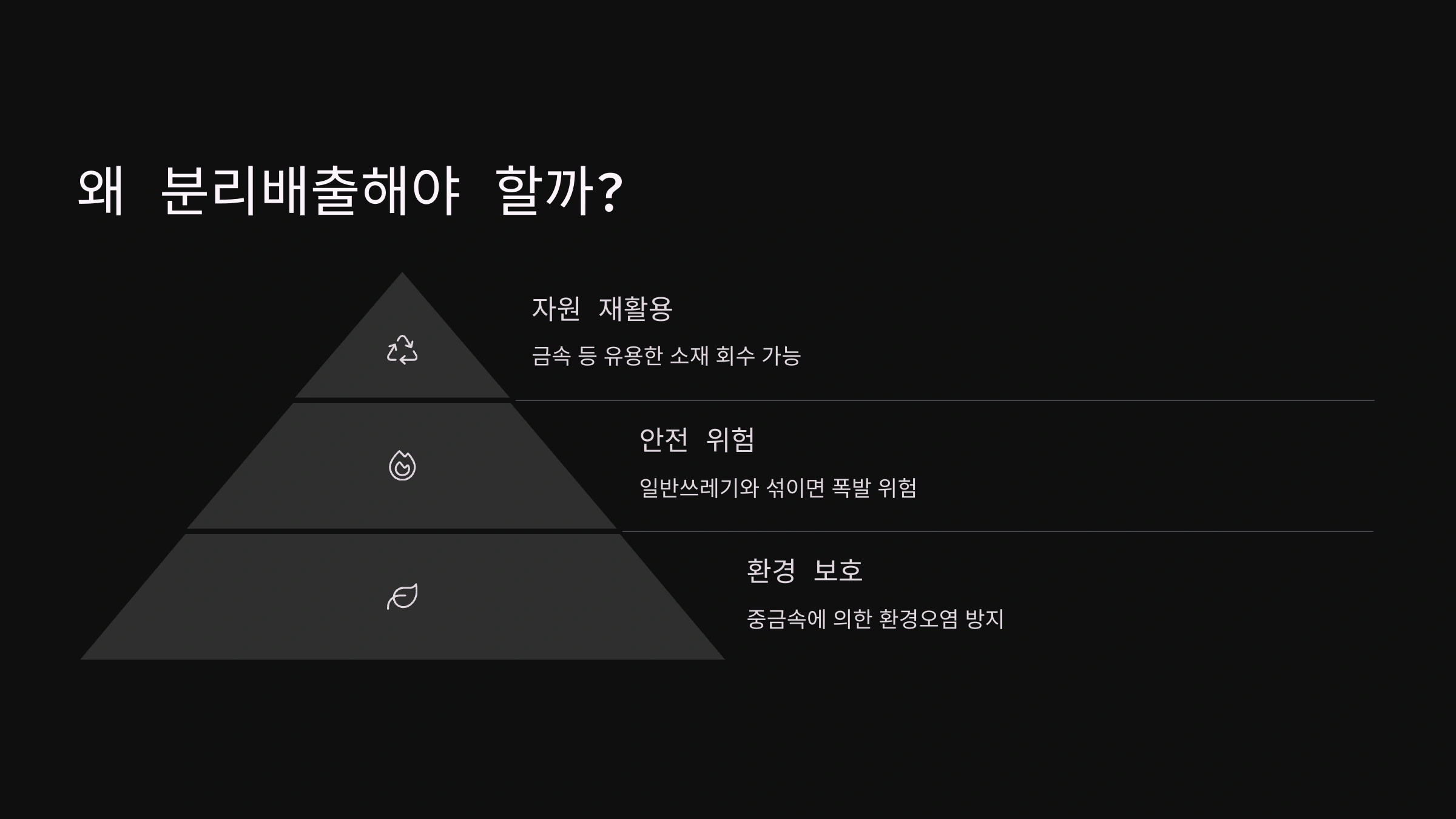 - 자원 회수: 남은 가루(블랙 파우더)에서 니켈, 코발트, 리튬 등 핵심 광물을 추출합니다.
