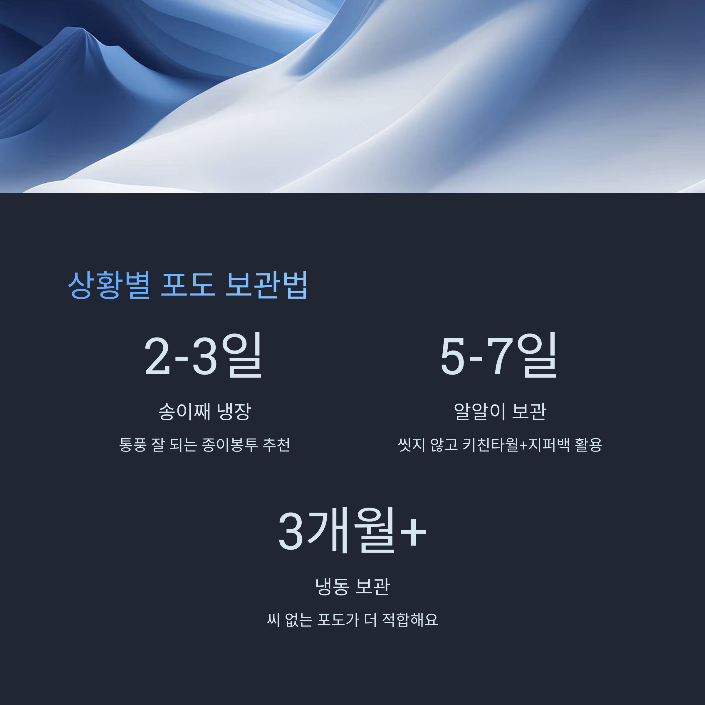 | 알알이 떼어 보관 | 5~7일 | 씻지 않고 키친타월+지퍼백 활용 |