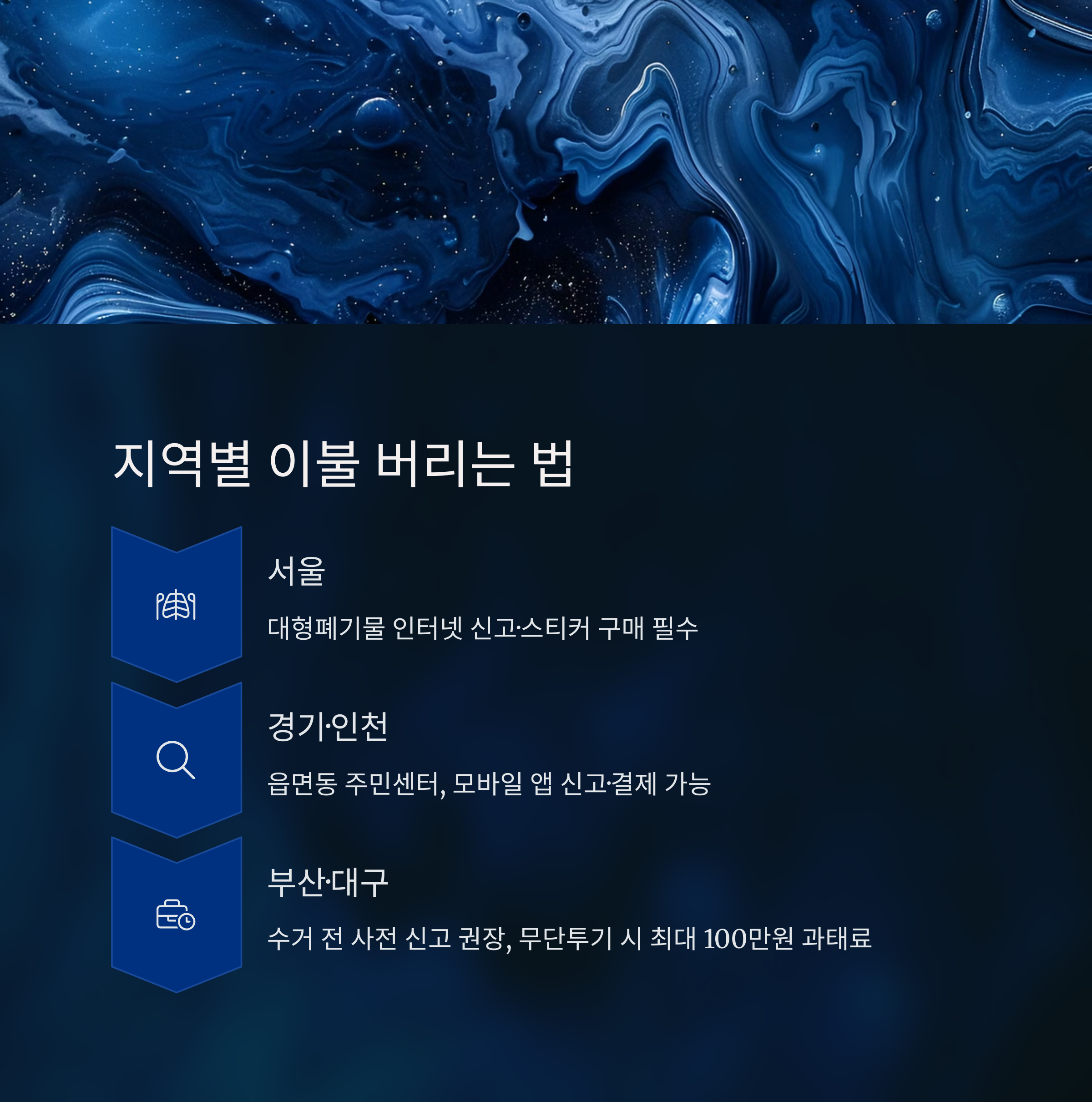 지역별 폐기 기준, 종량제봉투 사용 여부, 무료 수거 팁까지 꼼꼼히 안내해드립니다.