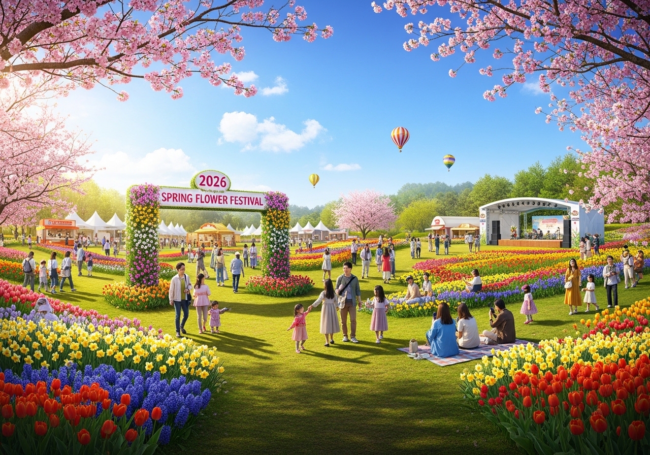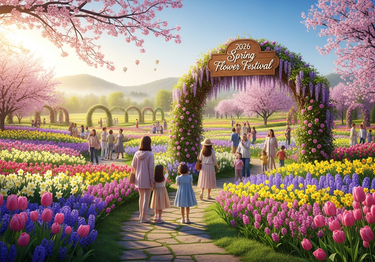 - 진해 군항제(벚꽃), 여의도 봄꽃축제(도심 벚꽃), 에버랜드 튤립 축제(가족형)가 주요 명소.
