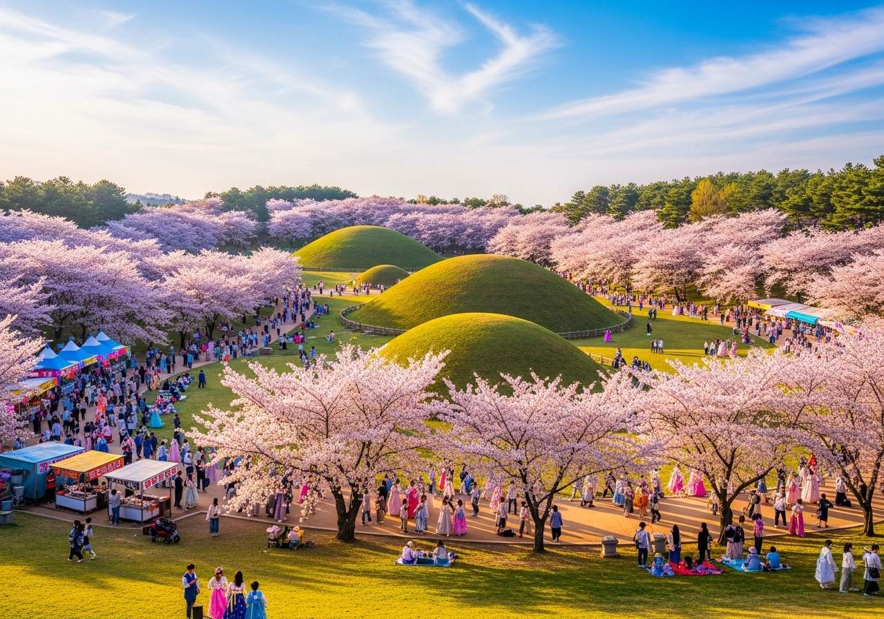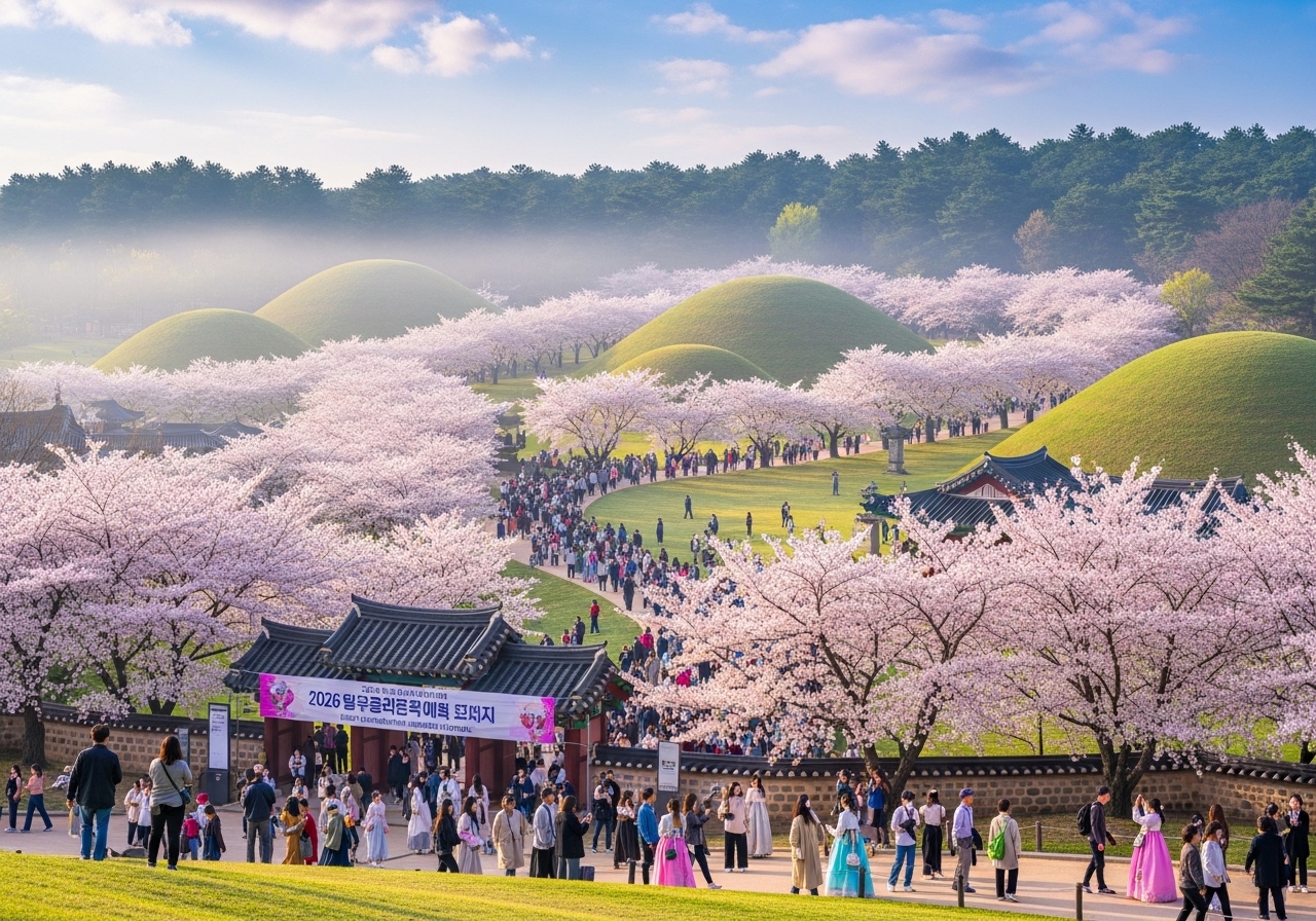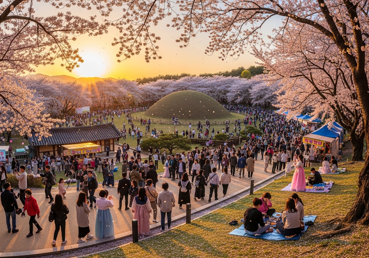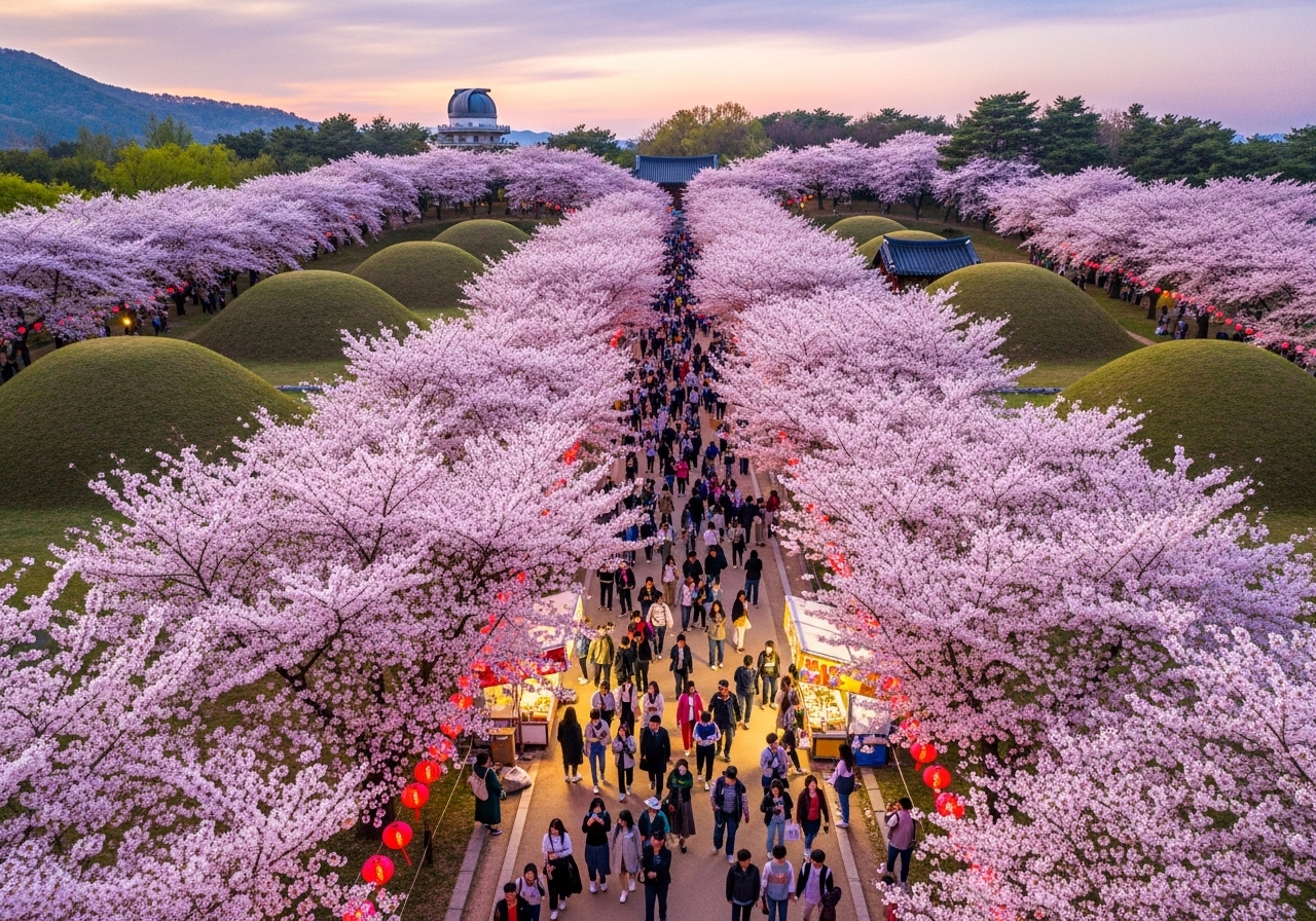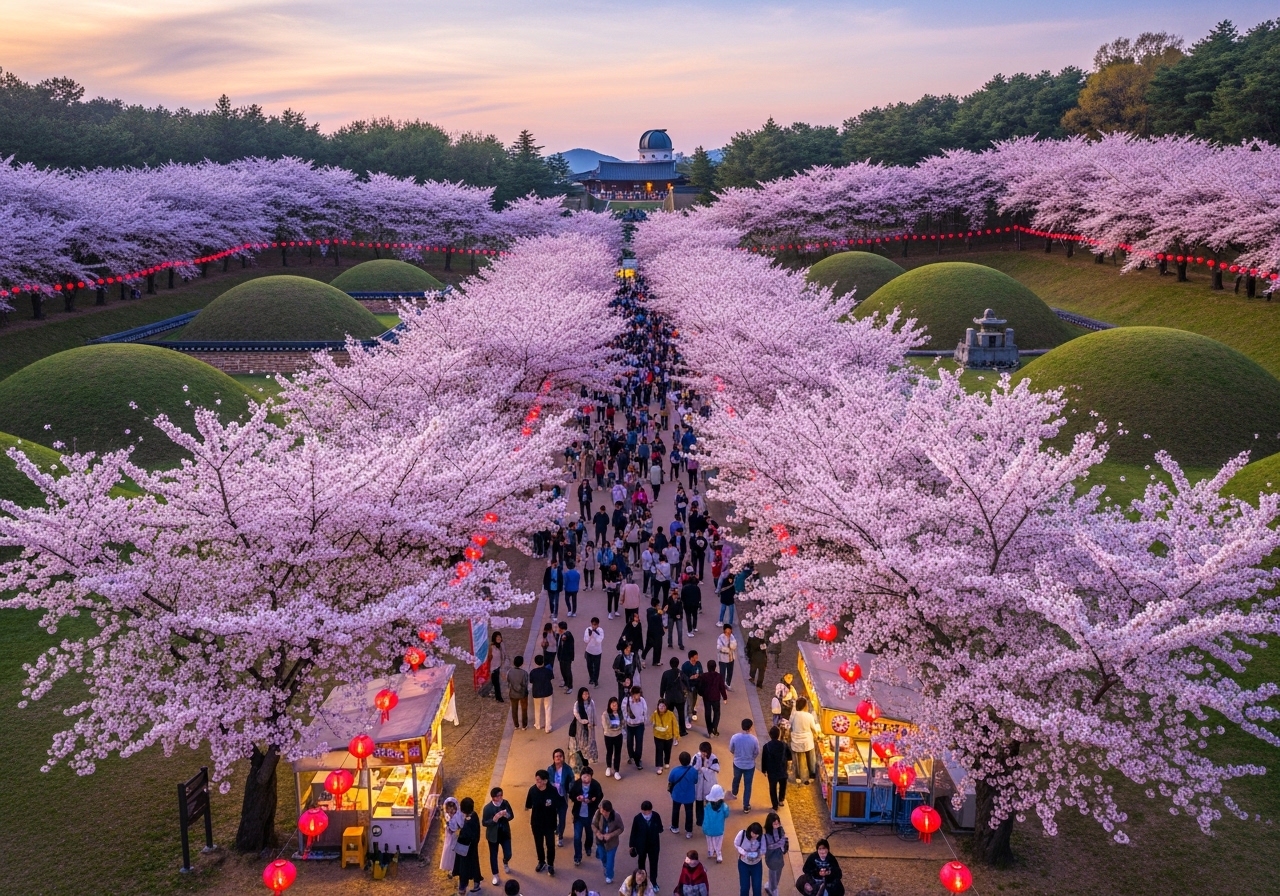 - 주요 매력: 신라 왕릉 배경의 벚꽃 터널, 야간 라이트업, 차량 통제된 보행자 천국이 특징입니다.