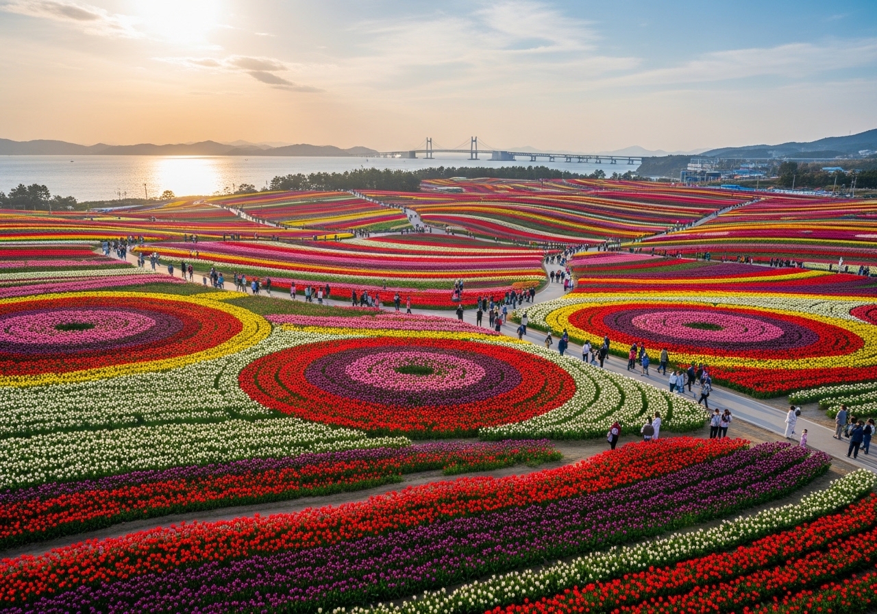 A1: 축제 기간(4월 10일~19일) 중 튤립이 80~100% 만개하는 4월 중순이 절정이며, 인파를 피해 여유롭게 관람하려면 평일 오전 시간대를 추천합니다.