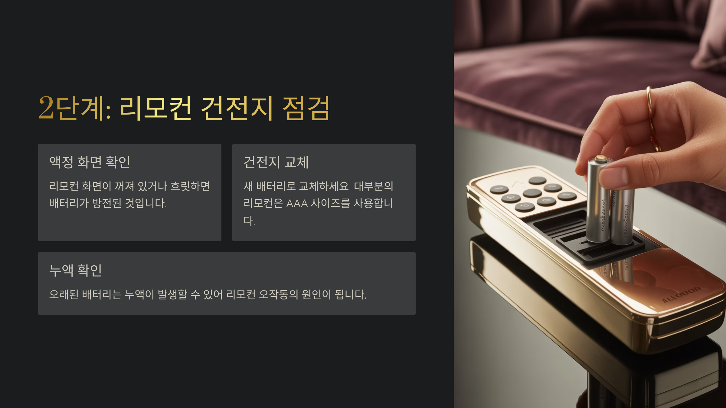 2. 혹시 리모컨 문제? 배터리부터 점검! 🔋