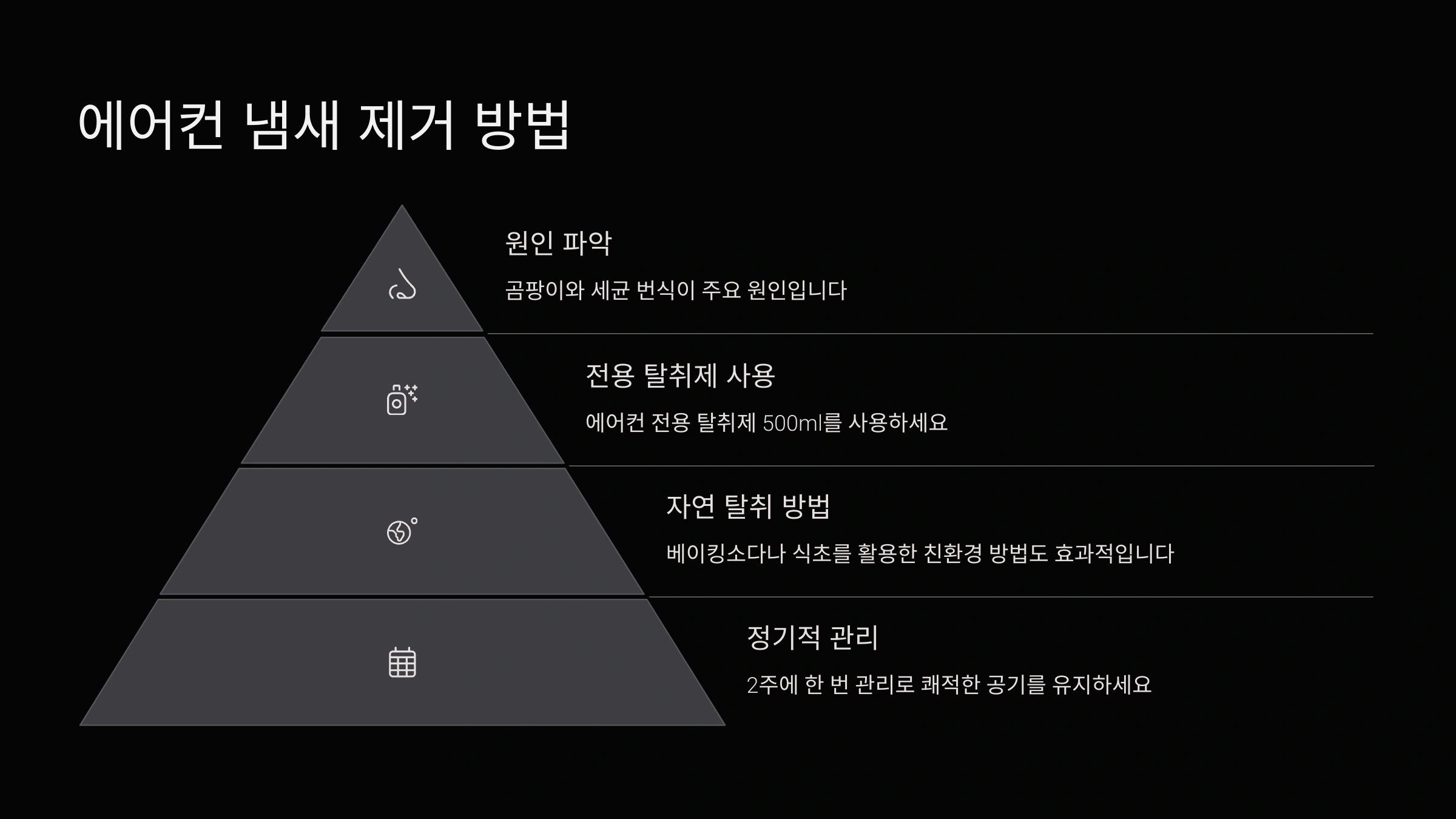 A4. 팬과 드레인팬 내부에 남은 곰팡이나 배수라인 막힘이 원인일 수 있어요. 완전 분해 청소를 하거나 전문가 점검이 필요할 수 있어요.