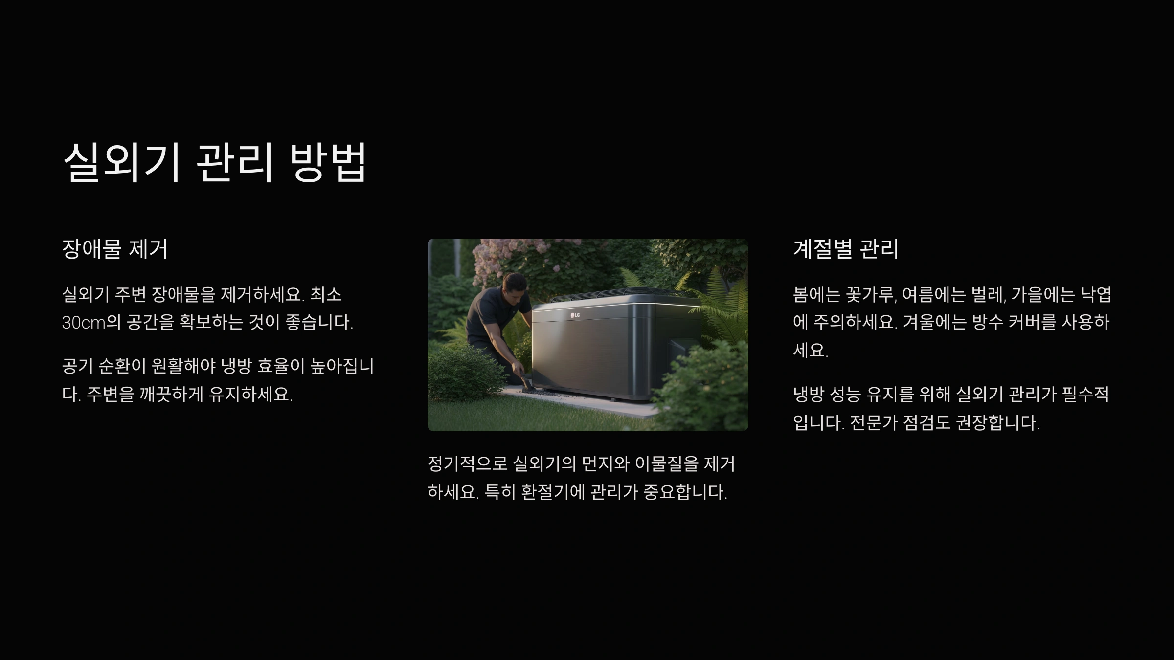 실외기 연 1~2회 브러시, 진공청소기 주변 공간 확보